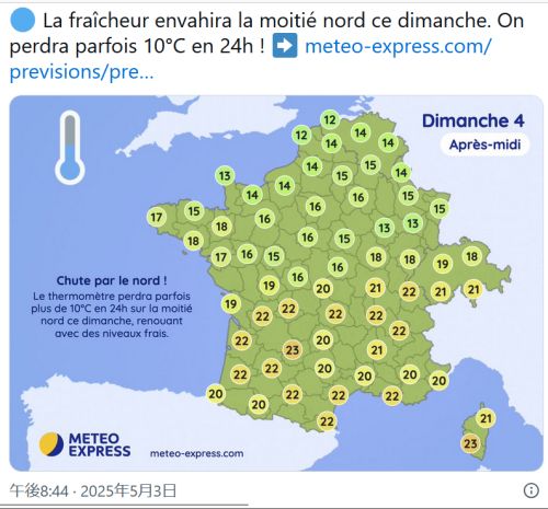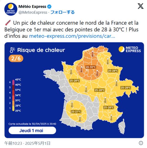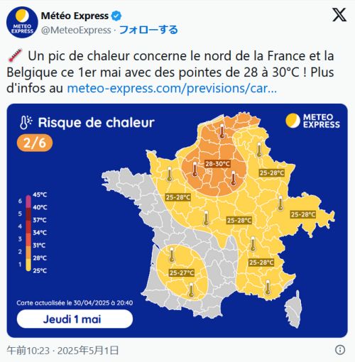 【PARIS】【METEO】【今日の天気と気温】2025年5月1日
