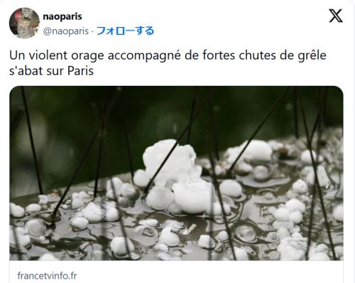 【PARIS】2025年5月4日最高気温17℃、5月3日雹が降る、5月1日最高気温29,4℃